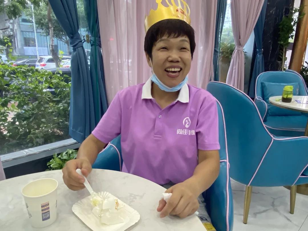 在生日會上,尚佳員工與月嫂們同唱《生日快樂》祝福歌、吹蠟燭、許心愿、送祝福、送禮物,分享生日蛋糕等等
