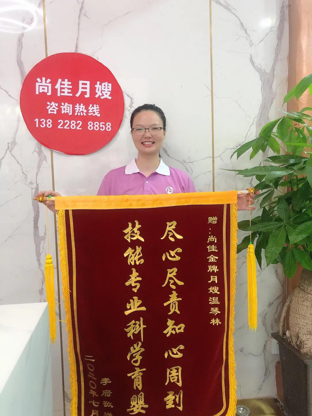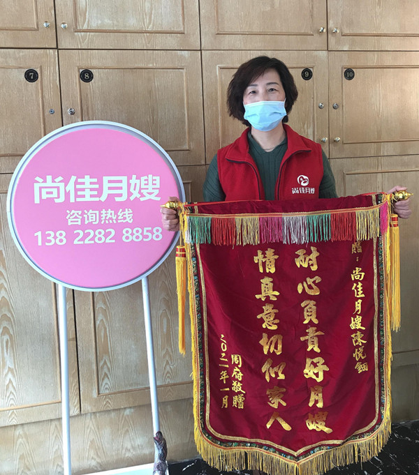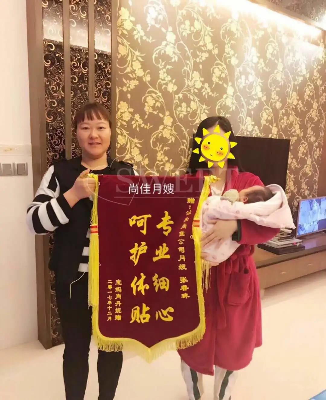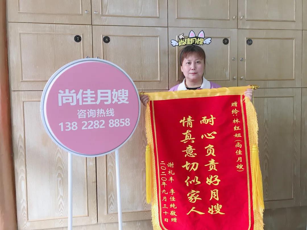 非常感謝填姐這一個月的幫忙,她給了我很大的幫助,特別省心,包括對寶寶日常照顧,以及對我剛生完身體不適的護(hù)理都非常有耐心,填姐會每天變著花樣做好吃的月子餐,感謝填姐很用心的照顧我們,特送錦旗一面以表謝意!
