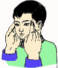 操作:兩拇指或兩中指端分別在左右兩太陽穴上揉動。向前揉為補,向耳后揉為瀉。揉30次。