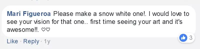 “畫一個白雪公主的吧!我很想看看你會畫成什么樣子...這是我第一次看到你的創作,太贊了?。?!”