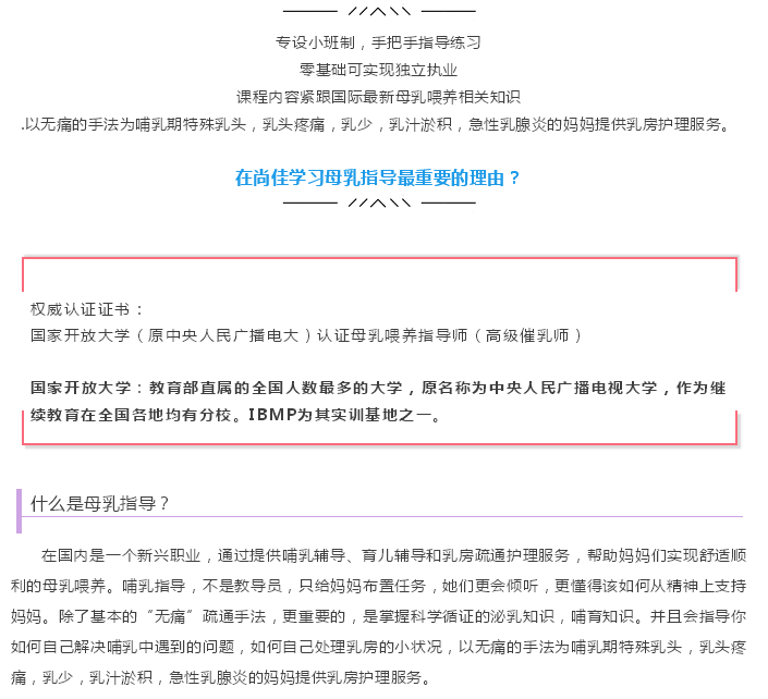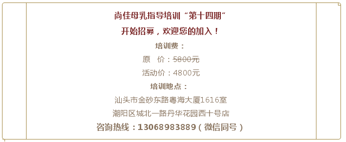 尚佳母乳喂養指導第十四期小班制專業班報名中