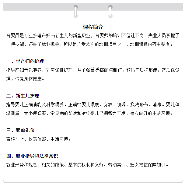 育嬰員免費培訓(xùn)即將開班!