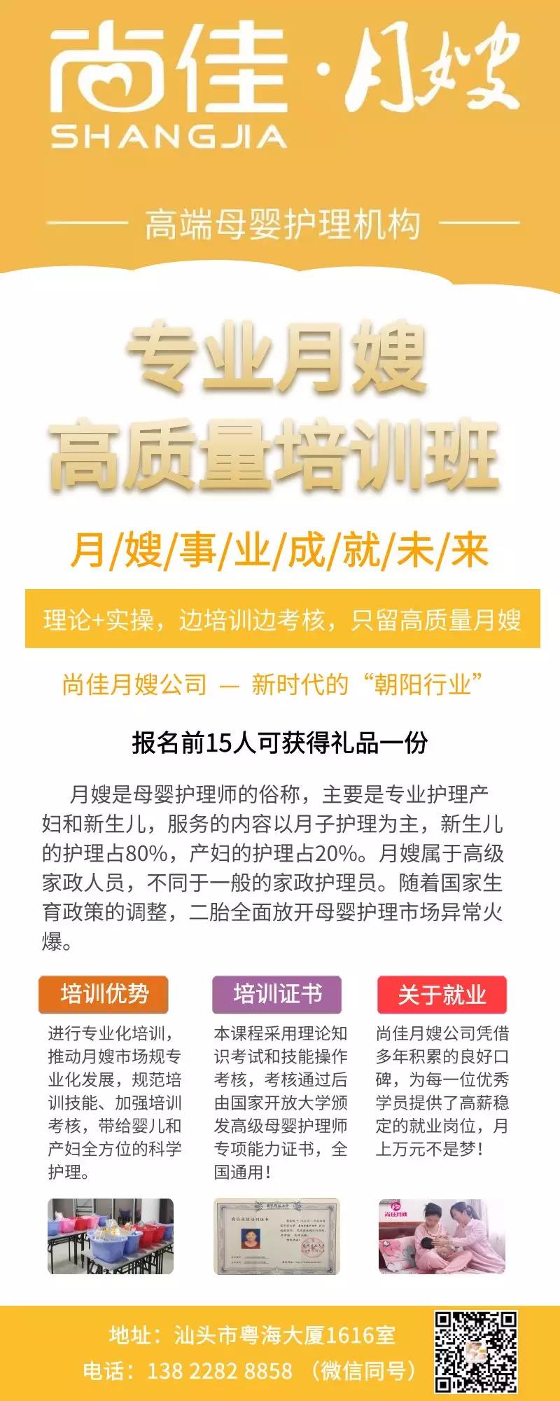 尚佳月嫂公司培訓課程的名額有限預報從速,外地學員可包住宿,歡迎各位學員踴躍報名!