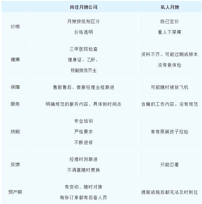 從您預定尚佳月嫂開始,我們已經為您安排好專業月嫂隨時待命,產前待產包檢查、生產后月嫂入戶照顧、月嫂入戶前的專業度考核、出戶前的物品檢查、按時回訪,出月后的產后恢復,產康的專業手法、私人訂制方案,讓您重拾少女感,恢復少女身材,我們已經為您準備好了所有,讓您從生產到出月,一切順心,對孩子的照顧放心,對月子內的服務安心,讓您看著孩子開心。