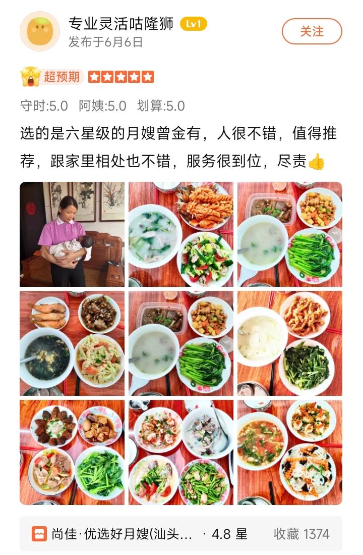 金有是江西贛州人,從江西嫁汕頭鮀浦已十出個年頭了,說了一口潮汕話,金姐人好心善,待人熱情,做事認真負責。她在工作期間對待寶寶就像對待自己的孩子一樣,寶寶護理方面擅長黃疸觀察,臍部護理,紅臀、濕疹的預防及護理,喂養指導,早早教寶媽護理方面擅長:乳房護理,惡露觀察,傷口護理,情緒疏導,營養月子餐制作。讓客戶很放心。她對寶媽也是悉心照料,還會時常開導寶媽,客戶都很喜歡她。