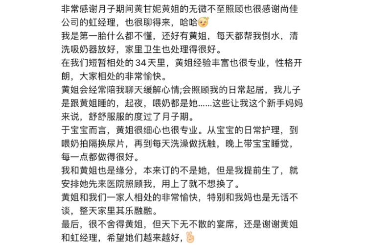 甘妮是來自廣西性格溫和,開朗大方,親和力強,做事細膩,擅長寶寶的五大行為訓練,被動操,排氣操,并幫助寶寶建立良好的生活習慣。媽媽護理方面擅長處理生理性漲乳,惡露觀察,身體放松,心情疏導,她做飯很好吃,擅長潮汕菜級燉湯,科學搭配月子餐(三餐三點)。選擇她,一定會讓您過一個舒心愉快的月子。