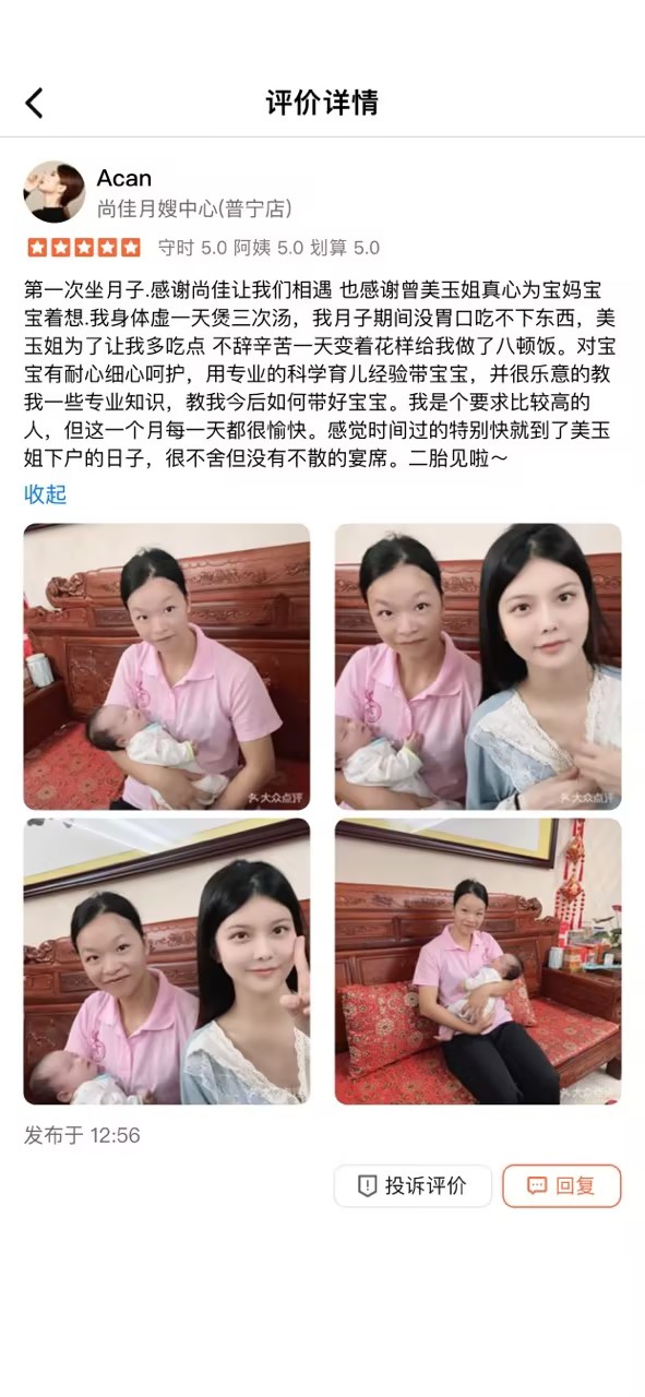 曾姐饒平客家人,笑容滿面的對待身邊的人事物,服務過的寶媽和家里人都非常喜歡她。對待寶寶溫柔細心,經常和寶寶互動。醫院護理專業性強,月子餐也是做的非常不錯,是您坐月子的不二選擇。